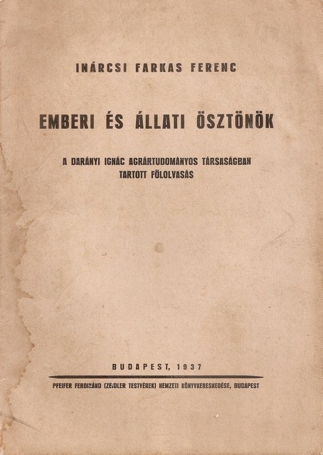 1937-ben az alig két éve alakult Darányi Ignác Agrártudományos Társaság levelező tagjává választotta. Székfoglaló előadása oly nagy sikert aratott, hogy könyv formájában is kiadták. Részletek az „Emberi és állati ösztönök” c. könyvből: