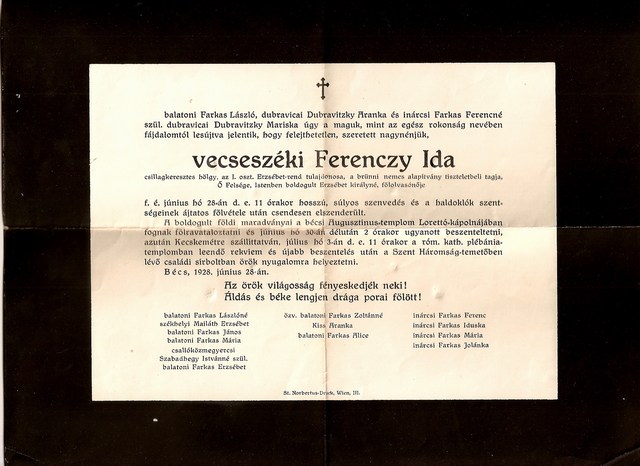 … A kedves Jóska bácsi felesége régebben Anyukám szobalánya volt, szelíd teremtés sok gyerekkel. Mikor kortársam, Manci született, nem volt teje. Anyukám a kedves Centa Schwesterrel gondoskodott róla, hogy legyen nálunk minden napra, frissen megfőzött tápszere. Ők akkor a - később eladott - kis tanyán laktak és a legnagyobb gyerek, Jozsó étkezések előtt átjött és elvitte a jégveremből felhozott esedékes adagot. Jozsóban egyszer győzött a kíváncsiság. Leült a kisút szélére és kiitta az egész üveget. Később, mikor kortársam, Manci elsőáldozó lett, anyukám fehér matrózruhát varrt neki. (Mancival haláláig leveleztünk.)