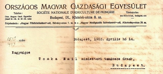 Méltóságos inárcsi Farkas Ferenc gazdasági főtanácsos úrnak és kedves Feleségének,
