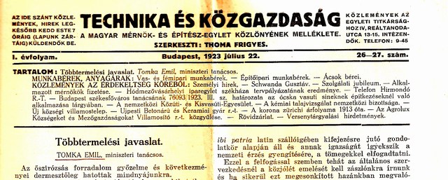 A Magyar Mérnökök és Építészek Nemzeti Szövetsége, a- melybe több, mint 1300 közgazdaságilag műveit egyén egyesült, többek között azt is feladatának tekinti, hogy a többtermelés megvalósításával, mint hazánk megmentésének ezidőszerint mondhatnánk legbiztatóbb eszközével is foglalkozzék.